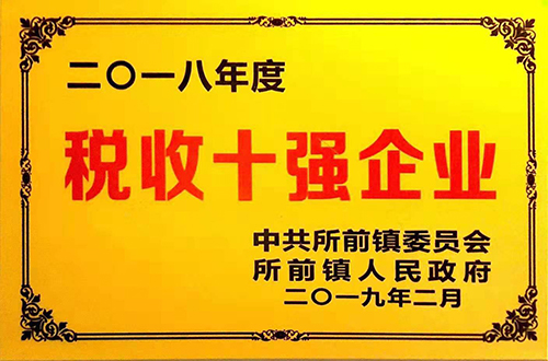 ▲喜獲所前鎮(zhèn)“稅收十強(qiáng)企業(yè)”